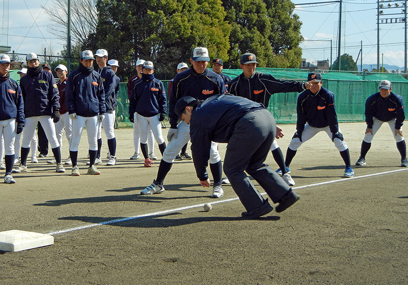 大学リーグ戦で審判を務めている部員が、県高野連主催の審判実技研修会にも参加することが十数年前から続いていました。県高野連の審判委員の中には、現在30歳前後の和歌山大出身者が3人います。後輩たちの良い目標になっているそうです。