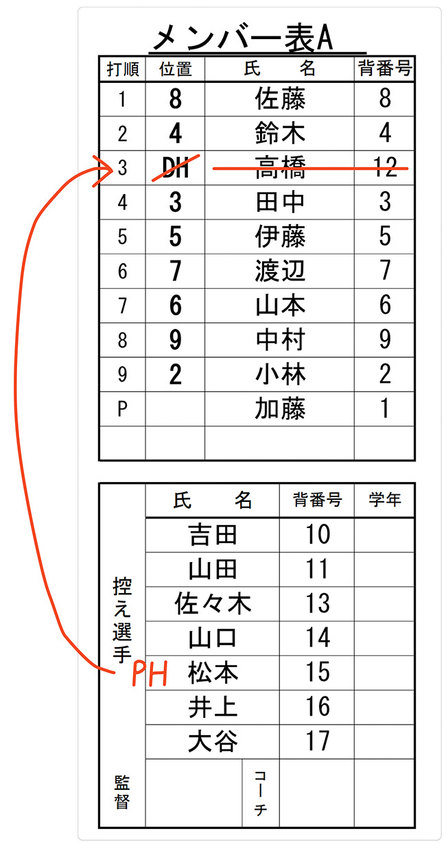 - 打順表に記載された指名打者の義務 【5.11(a)(2)】