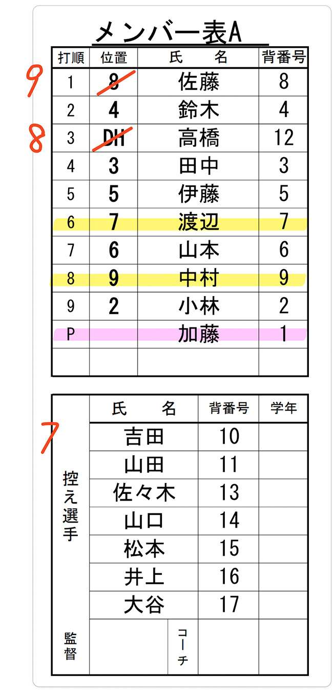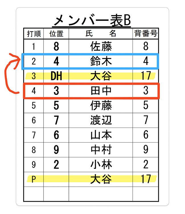 2人以上の交代が行われたときは、監督が、打撃順を指名しなければなりません。