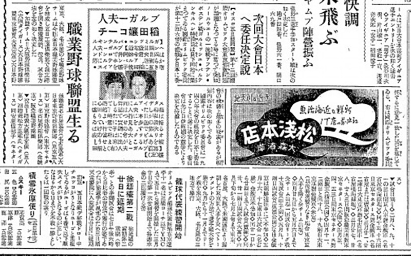 全日本職業野球連盟の誕生を伝える東京日日新聞紙面=1936年2月6日