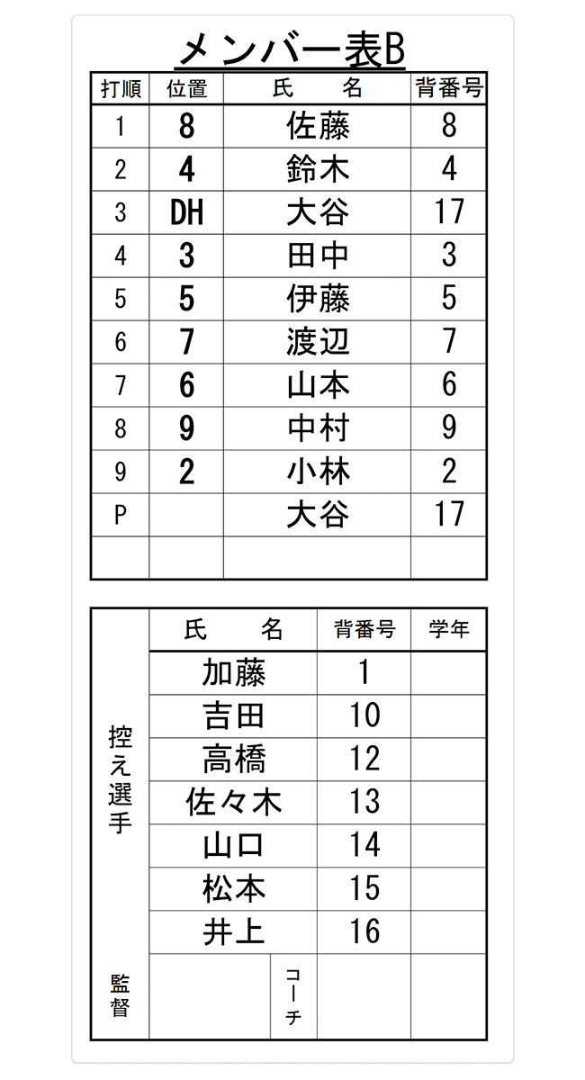 指名打者制度を使用する場合、試合開始前にオーダー表に指名打者の指名と打順を明記し、本部、相手チームおよび審判委員に正確に申告する必要があります。申告を怠ると、その試合ではDHを使用できません。
