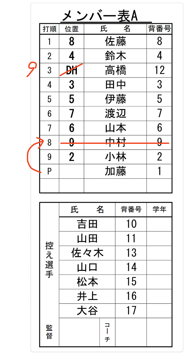 2人以上の交代が行われたときは、監督が、打撃順を指名しなければなりません。