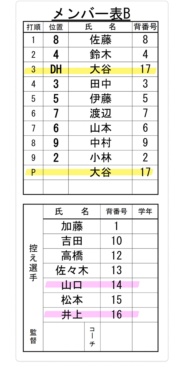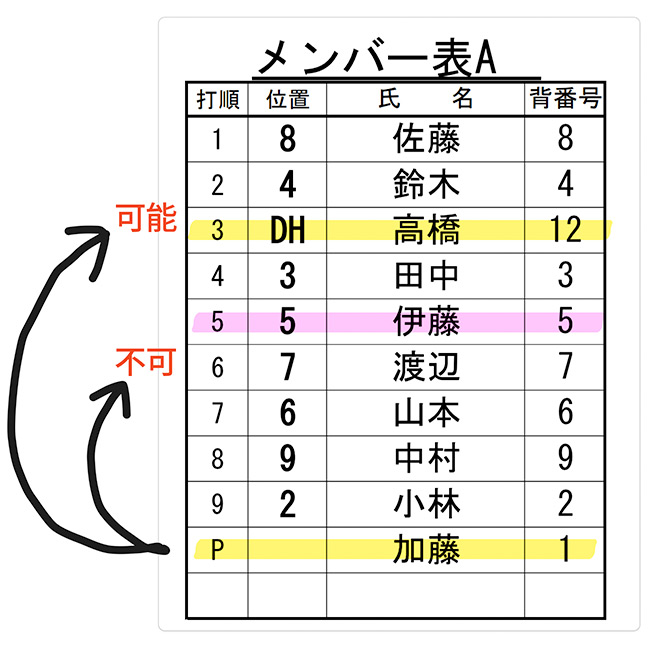 - 打順表に記載された指名打者の義務 【5.11(a)(2)】