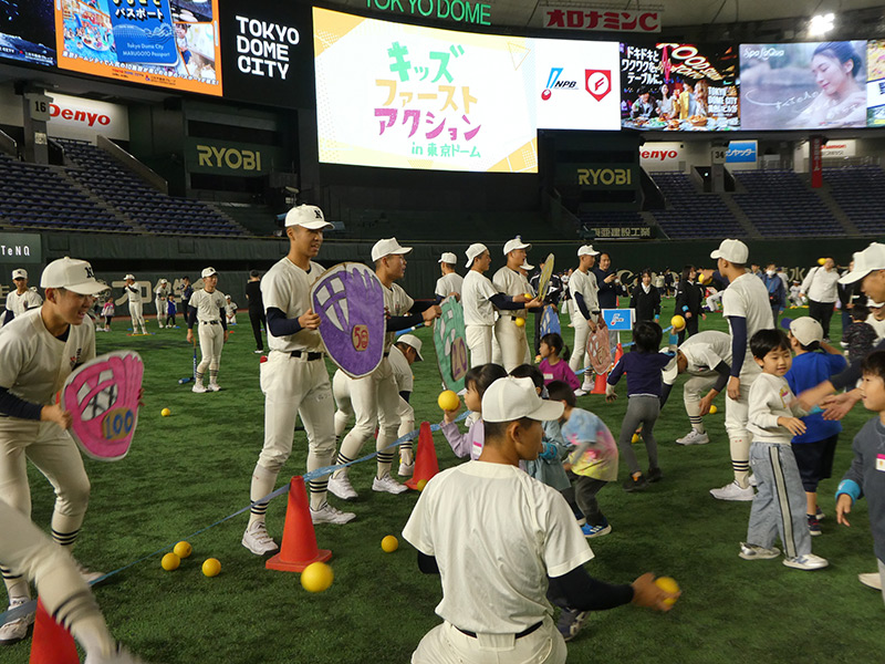 一般社団法人日本野球機構(NPB)と公益財団法人日本高等学校野球連盟(日本高野連)が、未就学児等への野球の普及振興事業を連携、協力して実施する「キッズファーストアクション~みらいへのキャッチボール プロジェクト~」の〝プレーボール〟事業となる「キッズファーストアクションin東京ドーム」を11月16日、東京ドームで開催しました。
