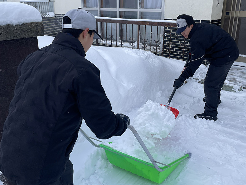 稚内大谷高校(北海道稚内市)は冬場に自力で除雪が難しい独居高齢者宅の除雪作業を手伝っています。1986年に当時の野球部長、山下優さんの呼びかけで始め、今年も1月14日に1,2年生部員14人が三つのグループに分かれて、午前9時から高齢者宅を訪ねて回りました。